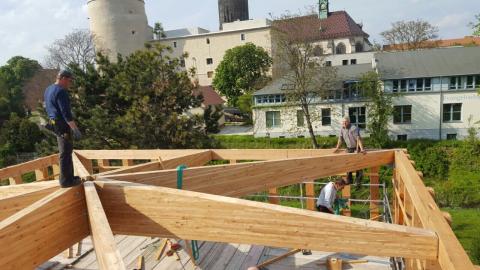 Im Rahmen der Weltausstellung Reformation in Wittenberg entsteht in diesen Tagen der Pavillion des House of One. Der Holzbau, der in Anlehnung an die Gestalt der Stadtloggia des zukünftigen House of One in Berlin aus Holzstämmen erbaut wird, befindet sich im Torraum "Ökumene und Religion" im Luthergarten.