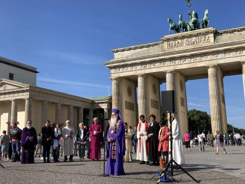 Am Antikriegstag, dem 1. September, hat das House of One zu einem multireligiösen Friedensgebet vor dem Brandenburger Tor in Berlin eingeladen.