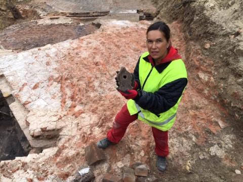 Von der christlichen Kirche zum Drei-Religionen-Haus: Die Archäologin Claudia Melisch präsentiert die derzeit noch freiliegenden Fundamente der zu DDR-Zeiten abgerissenen Petri-Kirche in Berlin Mitte.