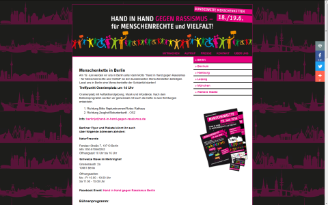 Weitere Informationen finden Sie hier:http://www.http://hand-in-hand-gegen-rassismus.de/menschenkette/berlin/