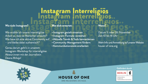 Die Teilnahme ist kostenfrei*, eine Anmeldung ist erforderlich. Bitte melde dich per E-Mail mit dem Betreff "Instagram" an: info@house-of-one.de