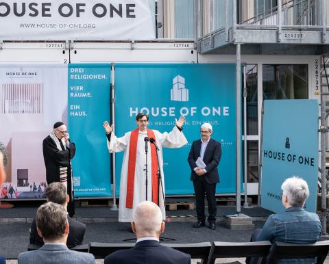 Mit Rabbiner Andreas Nachama, Pfarrer Gregor Hohberg und Imam Kadir Sanci (alle House of One).